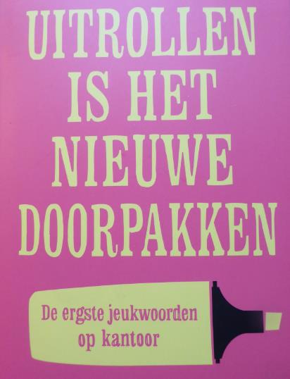 in de lift zitten; een stukje beleving; gamechanger met can do-mentaliteit; in je kracht zetten; samen een traject ingaan; mag ik even iets tegen je aanhouden?; de regie pakken; uit je comfortzone komen; een idee pitchen; iets uitrollen; de constante dialoog; ik neem het mee; een gedreven en ambitieuze teamplayer; kwaliteitsimpuls; ik heb al aangegeven dat...; kostenplaatje; stakeholder; werkse. |
